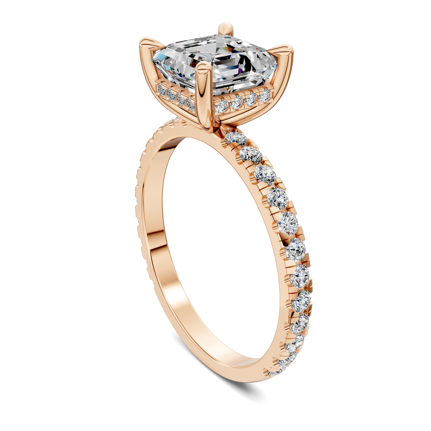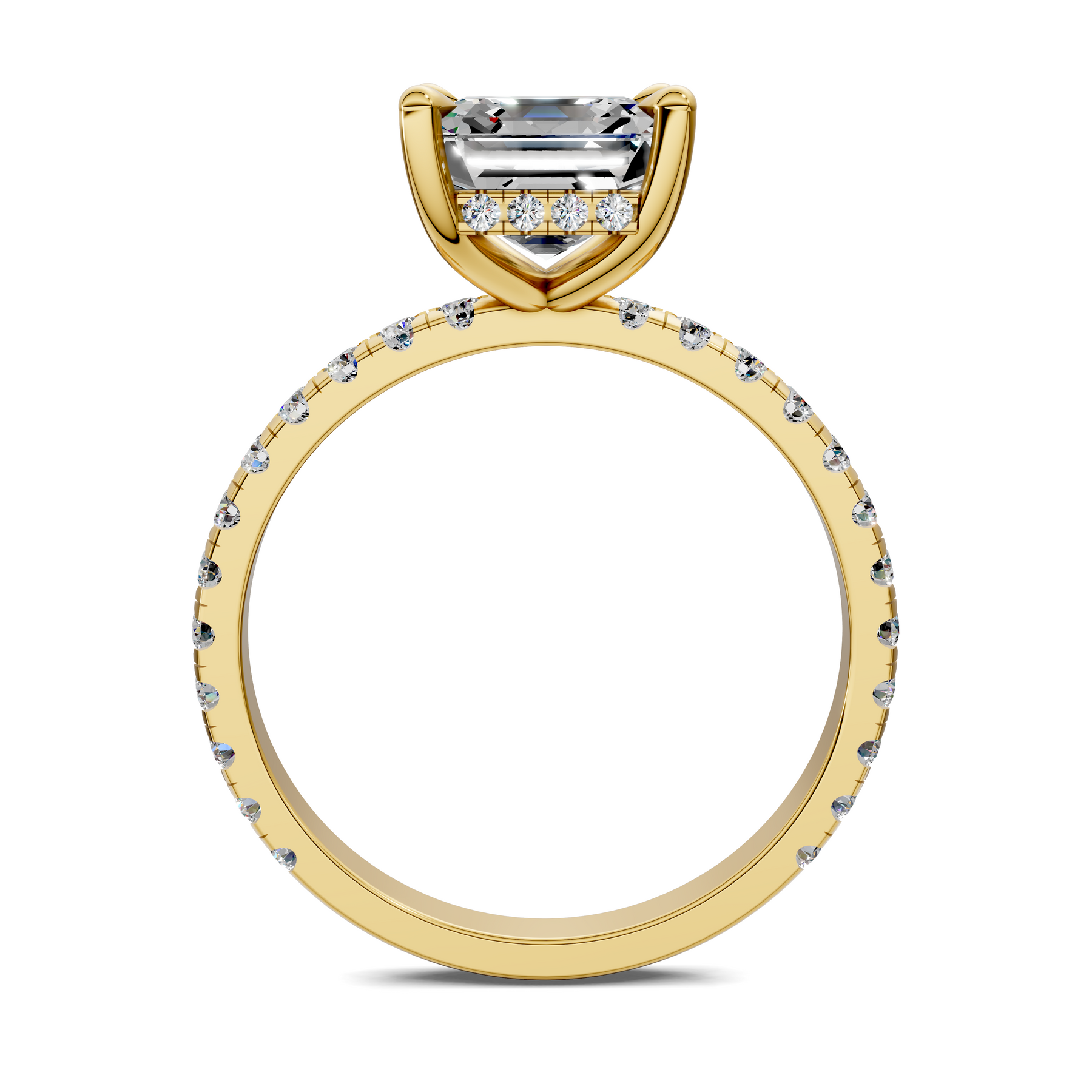 Priscilla Hidden Halo And Pave Ring features a refined, contemporary design crafted in gold. Graceful claw prongs secure the center lab-grown diamond, while pavé-set lab diamonds shimmer along the gallery and band for added brilliance. Thoughtfully engineered to sit flush with a variety of wedding bands, this ring creates a seamless, gap-free look while offering elegant detail and comfortable everyday wear.